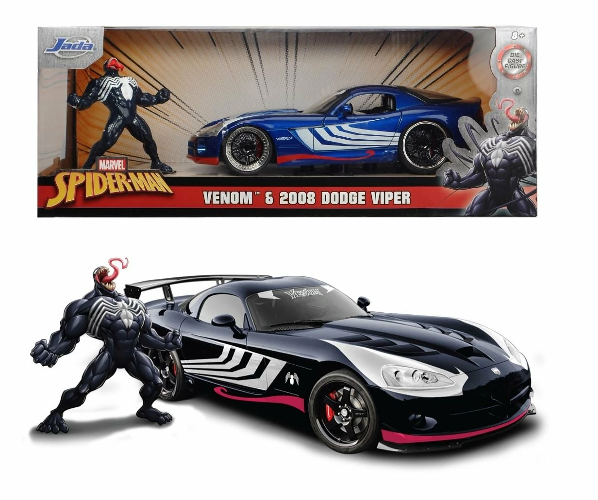 Cette Dodge Viper 2008 connue de « The Amazing Spiderman » des studios Marvel est le cadeau ultime pour les fans. Inclut une figurine Venom moulée sous pression.• Modèle JADA moulé sous pression• échelle 1:24• Décoration de film à thème sous licence officielle et authentique• Détails riches en fonctionnalités tels que l’ouverture des portes, le capot et le coffre.• Intérieur, compartiments moteur et châssis détaillés.• Corps en métal moulé lourd de qualité avec roues très détaillées• Donnez vie au film à la maison avec ces véhicules de cinéma authentiques.• Un must have pour tous les collectionneurs!